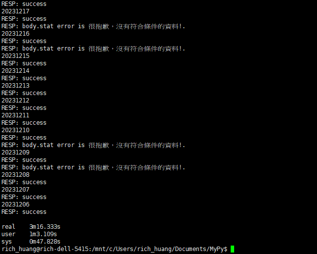 time ./twse_mget.sh 20241205 365 # 從指定日期往過去查找365天, 有資料就抓下來